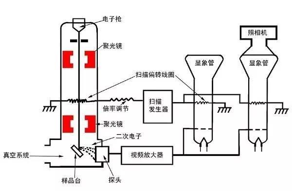 掃描電鏡可粗略分為鏡體和電源電路系統(tǒng)兩部分。鏡體部分由電子光學(xué)系統(tǒng)、信號(hào)收集和顯示系統(tǒng)以及真空抽氣系統(tǒng)組成。