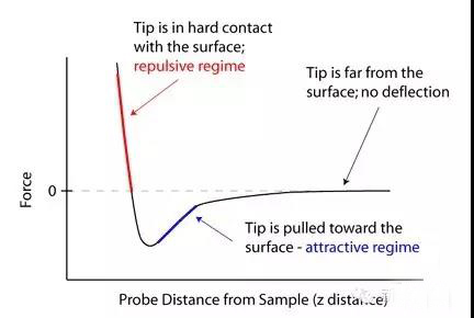 圖2 原子力顯微鏡的針尖與所接觸表面之間的作用力與二者相互距離的關系。