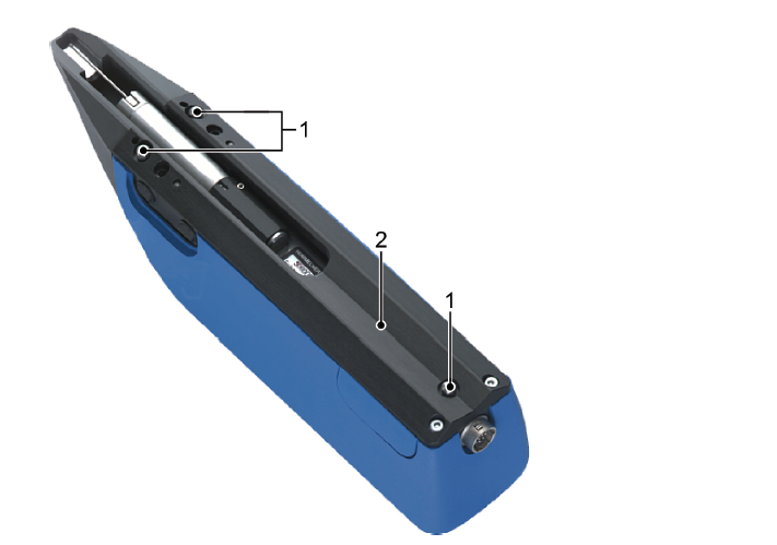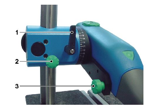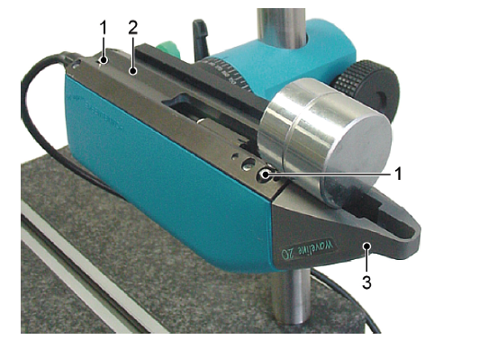 如果工件不能為直線(xiàn)進(jìn)給裝置提供足夠的放置空間,就需要將進(jìn)給裝置安裝至高度可調(diào)的測(cè)量支架上。首先固定住W20的適配器套件,使用搖轉(zhuǎn)桿(1)鎖住轉(zhuǎn)子的擺動(dòng)單元,額外通過(guò)擰緊止動(dòng)螺栓(2)防止轉(zhuǎn)子滑動(dòng)。再將直線(xiàn)進(jìn)給裝置固定在適配板上,將夾緊螺栓(3)穿過(guò)適配板并擰入定位孔中,然后擰緊。