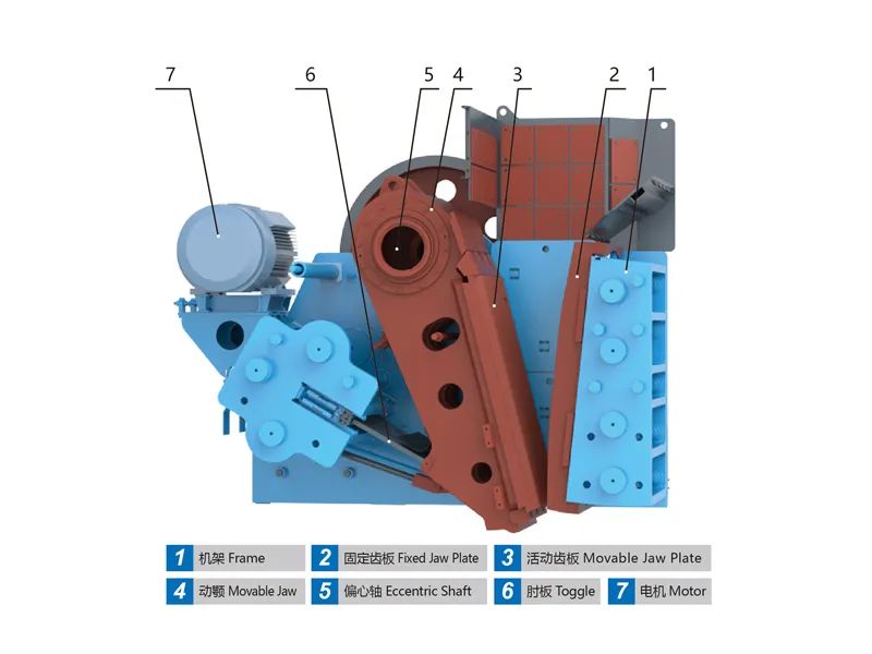 動顎上方安裝了重型護板,可避免物料沖擊, 有效保護動顎體及其內部軸承不受損壞。