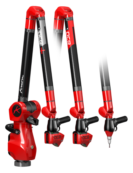 ACE測量臂分為ACE系列和ACE+系列共兩個系列,ACE+測量臂采用最新的編碼器技術,擁有先進的校準方法,保證其出色性能;ACE系列測量臂和ACE+系列測量臂均可分為6軸測量臂和7軸測量臂兩類,6軸測量臂是高精度點測方案的完美選擇,同等尺寸下6軸測量臂比7軸測量臂更精確;7軸測量臂適合掃描測量方案,與SKYLINE 3D掃描儀直接集成,掃描和點測間輕易轉換。
