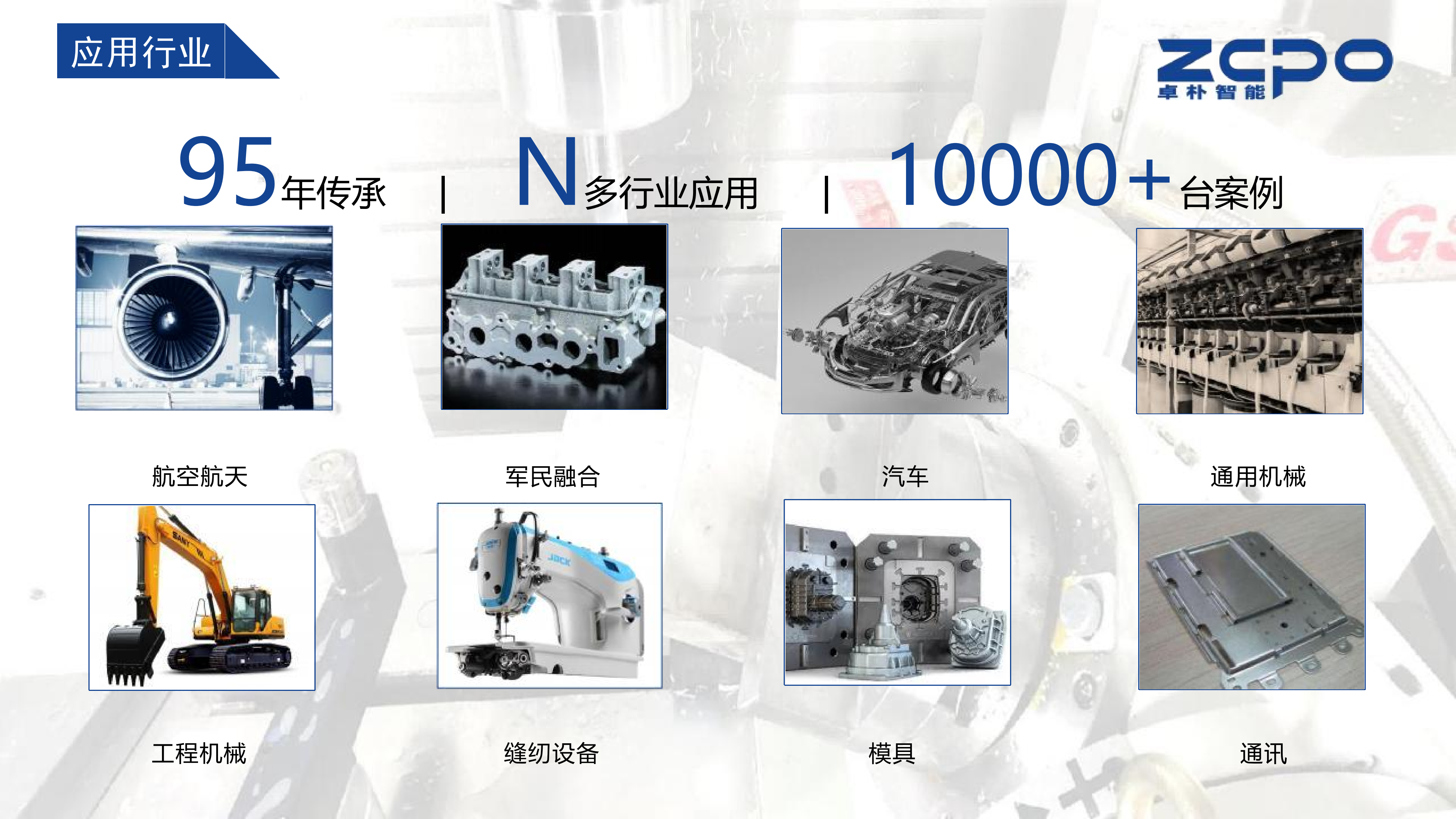 卓樸智能的主要產品包括立式、臥式和門式數控加工中心,以及普通、數控升降臺銑床和數控立式、臥式車床等五大系列,擁有覆蓋200多種規格型號的金屬切削加工產品。公司產品廣泛應用于汽車、船舶、工程機械、新能源、模具、3C電子等領域,多年以來積累了近千家各行業優質客戶與大量的行業工件級解決方案。